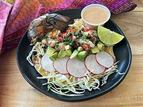 Grilled lobster and corn make these tacos extra fancy and delicious! Top with homemade or store bought chipotle ranch dressing and add all of the regular taco goodies, including grated cheese, radishes, diced peppers, shredded cabbage and a squeeze of.