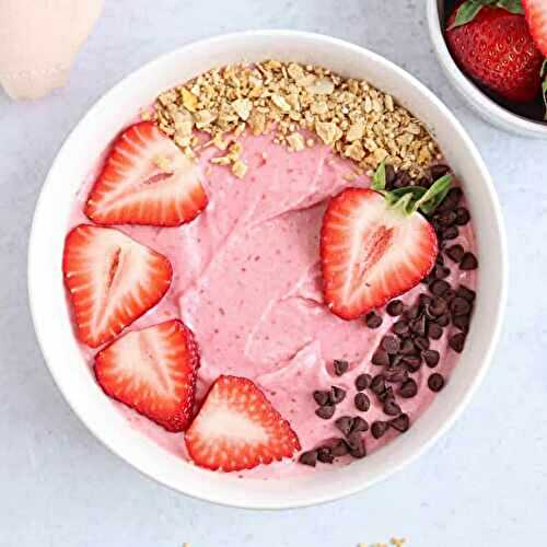 This thick and creamy Strawberry Smoothie Bowl is bursting with the sweet and tangy flavors of ripe strawberries, combined with creamy Greek yogurt and a touch of natural sweetness.