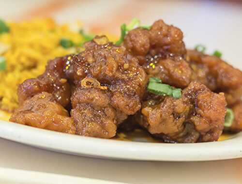 The deep-fried boneless chicken bites mixed in sweet-spicy syrup and placed on a pile of broccoli, known as General Tso’s, General Gau’s, or General Gao’s,