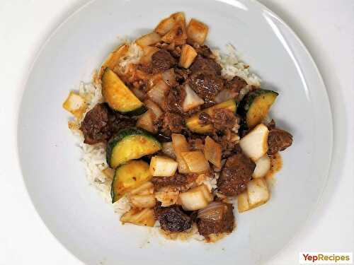 Slow stewed beef with onion, jalapeno, tomatoes, potatoes, and cumin.