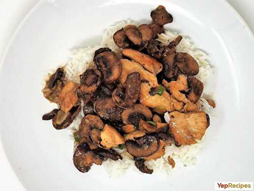 Ground turkey, onion, and mushrooms in a sour cream garlic sauce served over egg noodles.