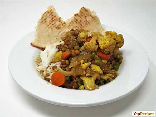 An Indian dish consisting of chick peas simmered with ginger, garlic, chiles, bold Indian spices and tomatoes served over basmati rice.