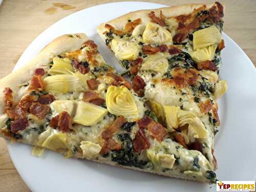 Cottage cheese, mozzarella cheese, fresh garlic, and fresh baby spinach baked on a homemade pizza crust.