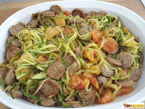 A vegetarian mushroom stroganoff with cremini, portobello and white button mushrooms.