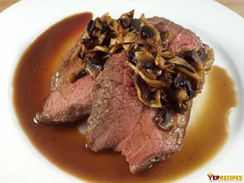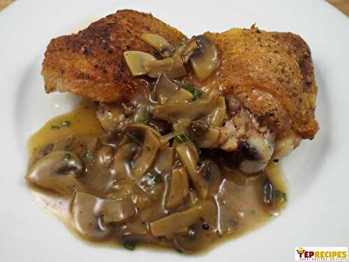 Boneless chicken breasts and button mushrooms cooked in a balsamic butter sauce.
