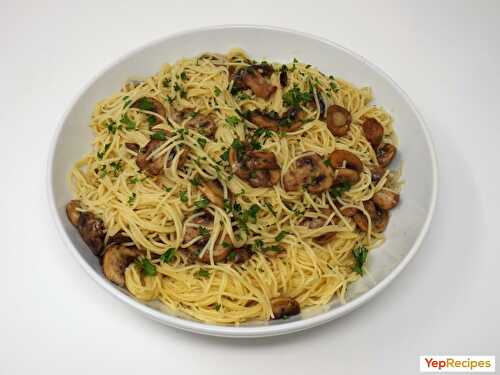 An easy chicken and mushroom pasta dish with a light broth & white wine sauce