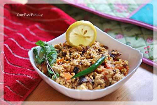 Paneer Bhurji - Recipe of scrambled Indian cottage cheese with onion, tomatoes and spices.