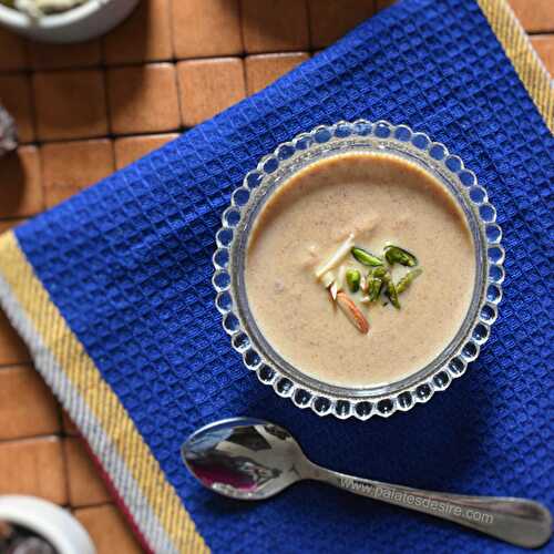Dates Kheer - is a thick , creamy and delicious nutty flavoured dessert with goodness of natural sweet plum dates.