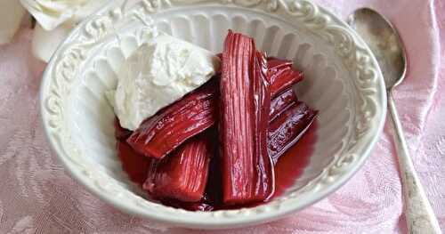 Baked rhubarb with creme fraiche is a super easy way to cook rhubarb without stewing it to a pulp (which is not a bad thing, I would add)! Makes a lovely and healthy dessert.