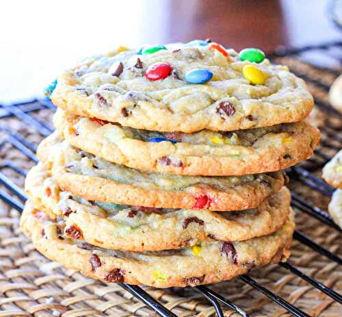 Peanut Butter Cup Oatmeal Chocolate Chip Skillet Cookie is baked to a golden brown and it's awesome served melty-warm right out of your cast-iron skillet.
