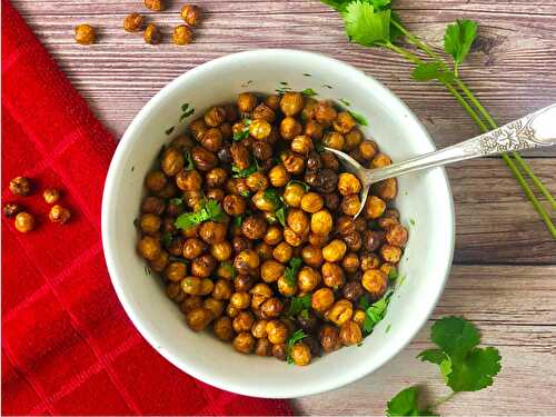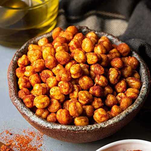 These spicy air fryer chickpeas are an easy, delicious, and healthy snack.