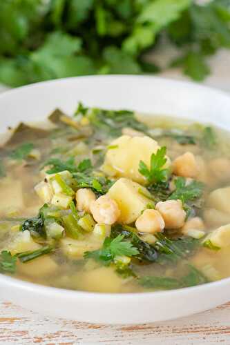 Light lemony spring soup with chickpeas and ramson (wild garlic).