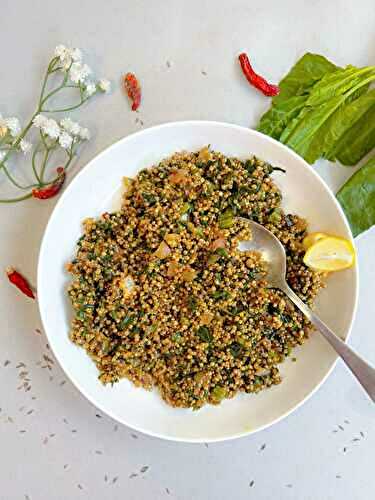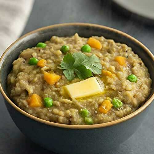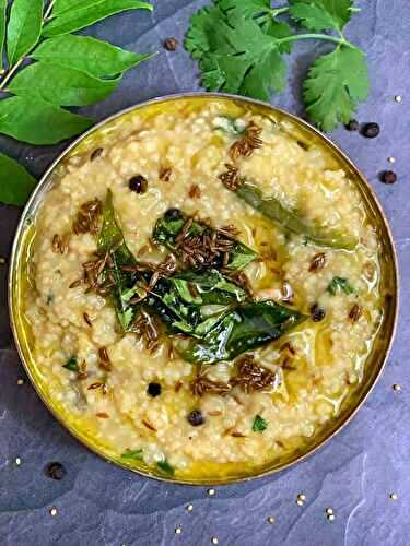 A delicious and nutritious pongal made with protein-rich foxtail millet, moong dal, and tempered with aromatic spices like cumin, peppercorns, and curry leaves.