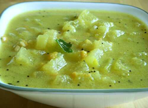 Unlike the regular Kootu, this variation of the popular South Indian Kootu is made using 3 vegetables - White Pumpkin, Yellow Pumpkin and Bottle Gourd.
