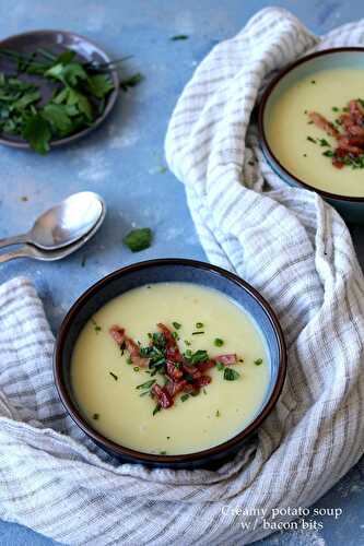 You're only 30 minutes away from eating this super easy soup recipe! Chunks of potato and pieces of smoky bacon in a creamy soup will fight off that winter chill! Serve this old fashioned soup with hot rolls, crackers or even in a bread bowl!