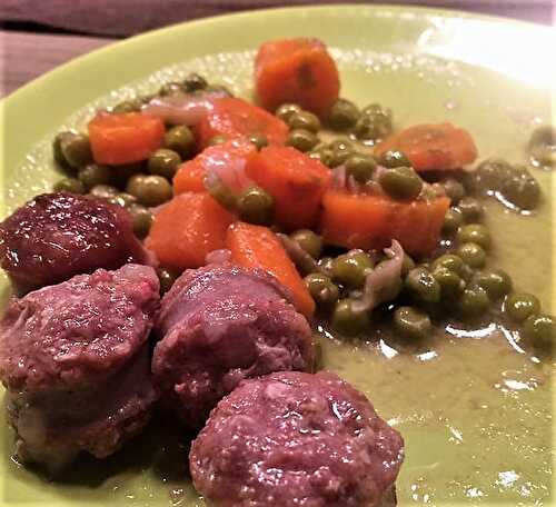 Recipe Toulouse sausages with peas and carrots from Elodie instant pot - Here, the sausages will be mixed up with frozen carrots and peas.