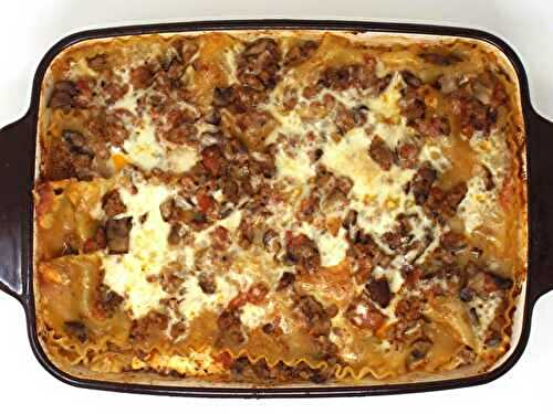 Lasagna noodles layered with mozzarella cheese, a ricotta Parmesan and basil blend, and a fresh tomato sauce made with homemade Italian chicken sausage.