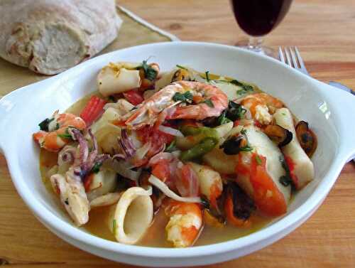 Succulent shrimp, calamari, scallops, crab, and clams are showcased in this rich and creamy seafood chowder recipe.