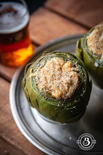 Rich and briny artichoke crab-like cakes with vegan caper tartar sauce.