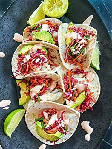 Tender, flaky cod piled onto tortillas with a homemade Mexican coleslaw and a quick sriracha lime crema, these fish tacos are ridiculously delicious!