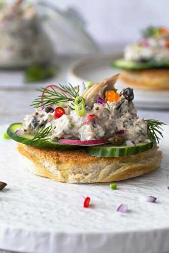 Toast with homemade smoked mackerel salad, tasteful, deliciously spicy