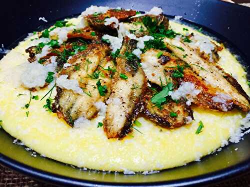 This simple dish containing a creamy polenta topped with pan fried sardine fillets and a splash of fresh garlic sauce is absolutely to die for especially if you are a garlic lover like I am ;-)