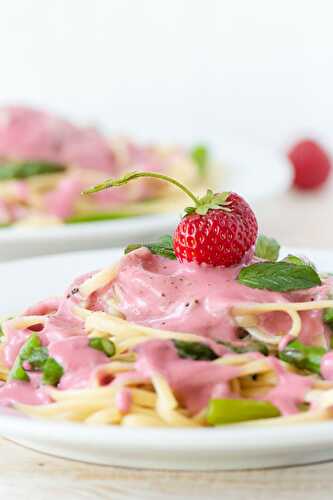 Finally spring is there, so it is time to make an appetizer with seasonal ingredients: a sale with asparagus and strawberries.