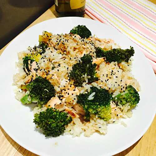 Stir-Fried Chicken with Broccoli and Peppers, served over quick-cooking brown Basmati.