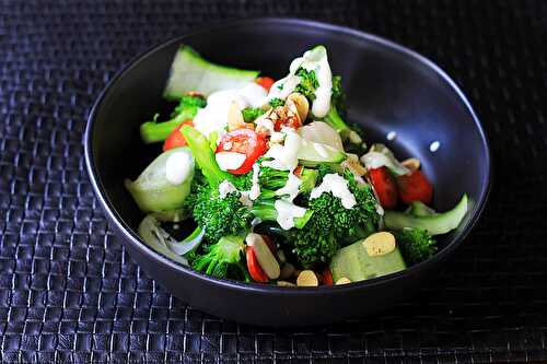 A mayo free dressing is used to create a lighter version of the classic broccoli salad.