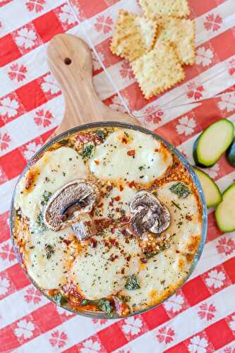 Not only is this warm, hearty dip vegetarian, it’s also low-carb and gluten free, so you can serve it at a party and not worry about everyone’s dietary needs too much, unless of course they don’t eat cheese, because this recipe is loaded with it.