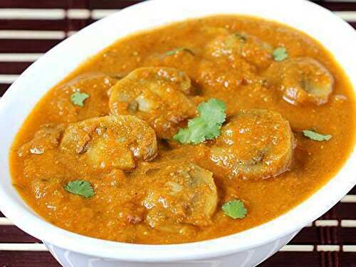 A super tempting, simple mushroom curry made with button mushrooms, tomato, onion, ginger, garlic, curd, and few flavourful common Indian spices.