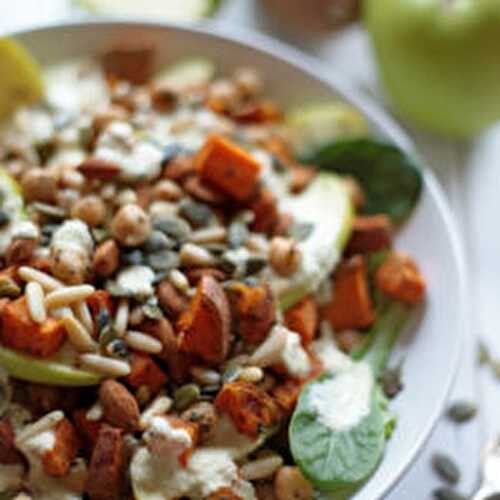 This mung beans salad with pumpkin and spinach, is easy to preapre.