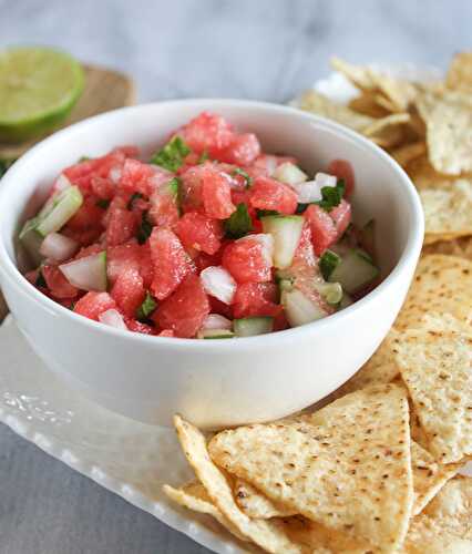 A fantastic salad made with watermelon, red onion, sweet cherries, blueberry vanilla goat cheese and fresh mint.