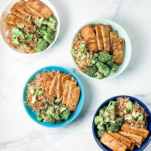 Crispy sheet pan noodles with tofu is an easy, absolutely delicious sheet pan meal that will level up your "Meatless Monday" rotation!