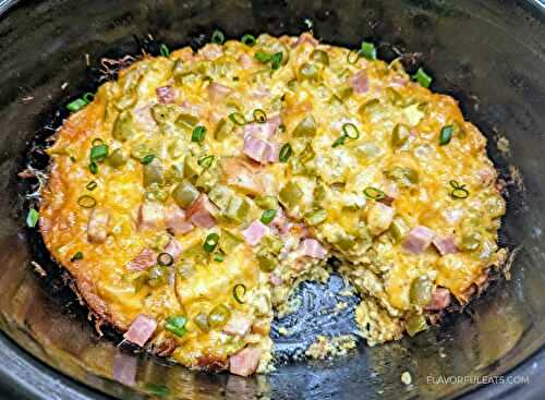 Slow Cooker Denver Omelet Breakfast Casserole - everything you love about a Denver omelet, eggs, onion, ham, bell pepper, and cheese, and transformed into a hearty breakfast casserole that's made in a slow cooker! This easy recipe is perfect for holidays,.