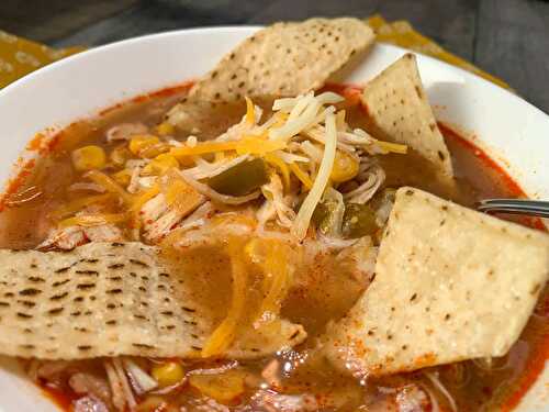 This creamy chicken & wild rice soup cooks up in the slow cooker using a whole chicken for a flavor-packed hearty soup.