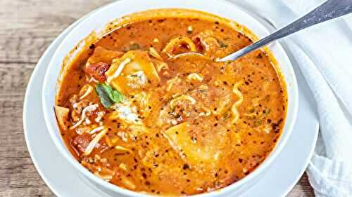 Crumbled beef, Italian sausage, and tender noodles are swirled into a rich tomato broth to make a one-pot lasagna soup that has all the flavors and textures of traditional lasagna! Don’t forget the best part…the ricotta, mozzarella, and parmesan cheese.