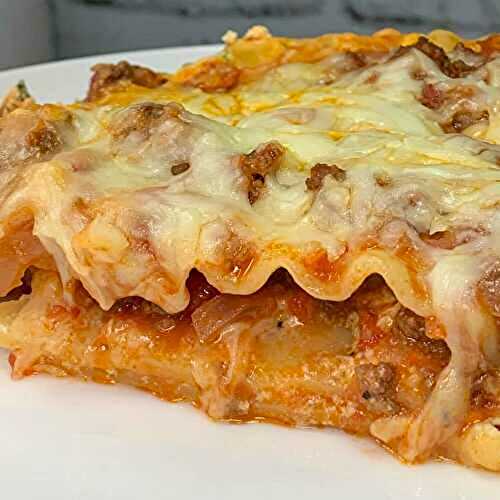 Lasagna noodles layered with a homemade ground turkey tomato sauce, provolone, mozzarella, ricotta, and Parmesan cheese.