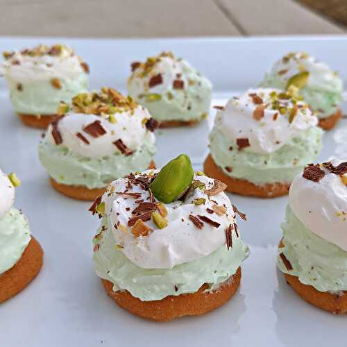 These Pistachio dessert mini bites are only 38 calories each! With a Nilla wafer, pistachio pudding mix, cream cheese, greek yogurt and cool whip, they are a healthy, but indulgent tasty treat!