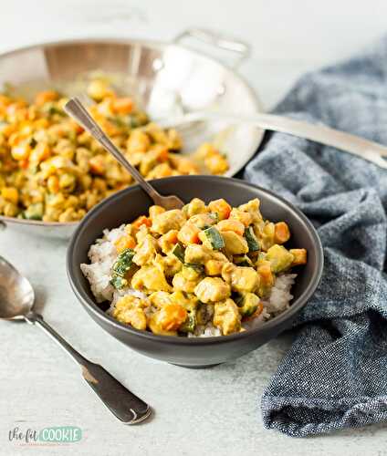 This Slow Cooker Creamy Chicken Chili is so easy to make, plus, this recipe is tummy friendly with no beans, dairy, or glutenGluten free, paleo; Free of: dairy, eggs, soy, nuts (except coconut), corn, beans