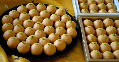 Traditional Besan Laddus Ingredients: 4 cups besan 2 to 2 ½ cups pure ghee 3 cups sugar power (Pithi sakhar) 1/4 cup milk 1 tspn c.
