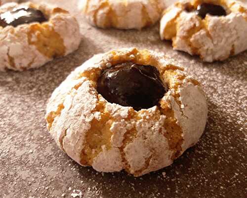 Need a quick, easy, last minute Christmas cookie? These thumbprints are perfect for kids to help with! Roll through some nuts of your choice and let their little thumbs make the idents for the jam!