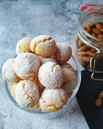 These amaretti are halfway between the hard little amaretti you get with a coffee after dinner and a macaron.