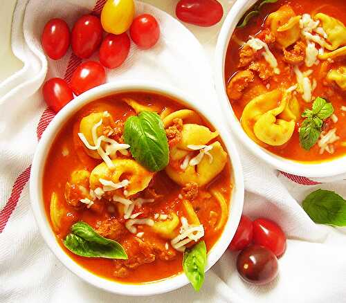 Tortellini Soup with Italian sausage ( Quick Version) : Hearty Italian soup, full of flavours and so easy to make ! It was late summer, several years ago, when