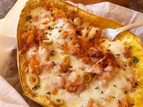 Italian Sausage Spaghetti Squash Bake : healthy, hearty, comforting spaghetti squash loaded with inviting Italian flavours.