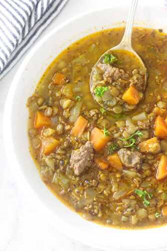 Italian Lentil Soup with Sausage is thick and hearty with lentils, Italian sausage, vegetables and spices in a rich broth.