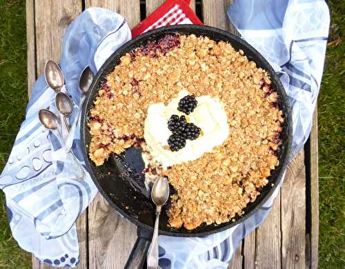 This one-pan skillet blackberry apple oat crunch has macadamia for a touch of luxury.