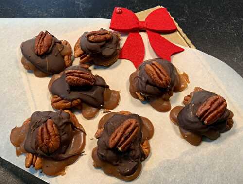 Dark chocolate, salted caramel and toasted pecans combine for the best crunchy, salty, chewy and gooey candy you can imagine!