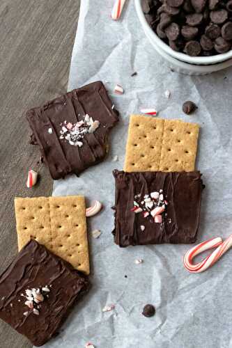 Celebrate the holidays with a sweet and savory treat of Chocolate Covered Graham Crackers with Peppermint.