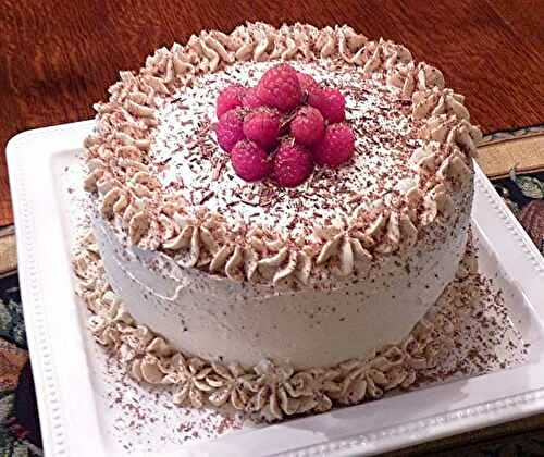 A most decadent cake with rich chocolate cake layers surrounded by an even richer espresso mascarpone frosting.